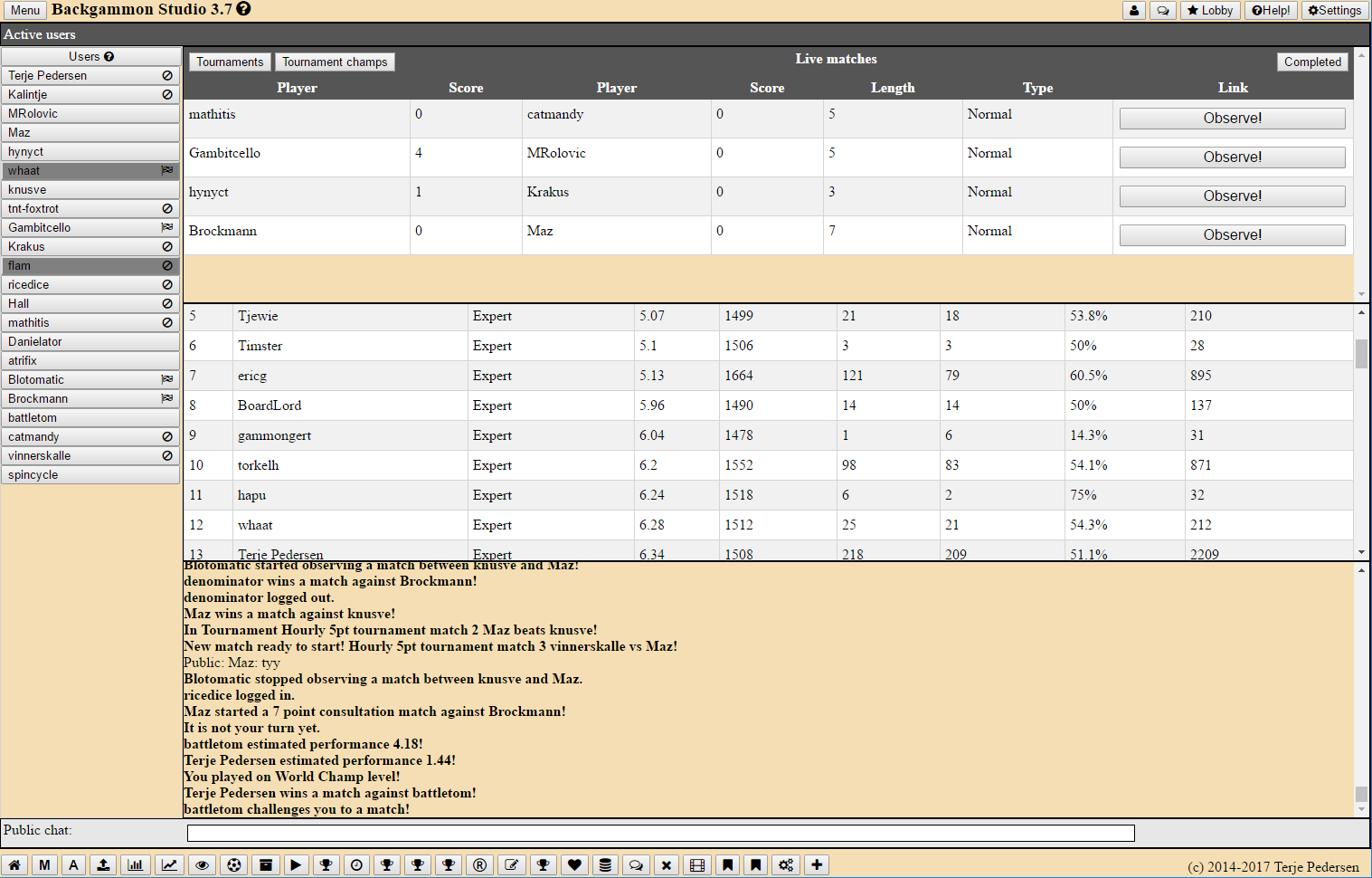 If you haven't tried playing matches on Backgammon Studio yet you should! It is great fun!