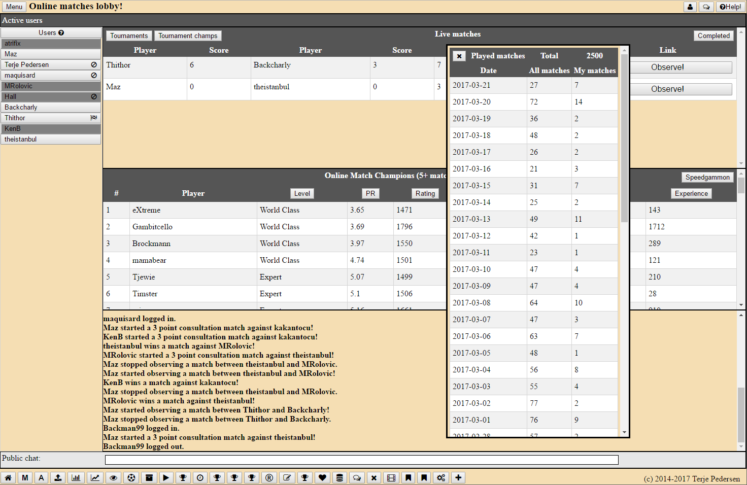 On monday Backgammon Studio reached a nice milestone of 2500 online matches played on the server. Pretty sweet! :-)