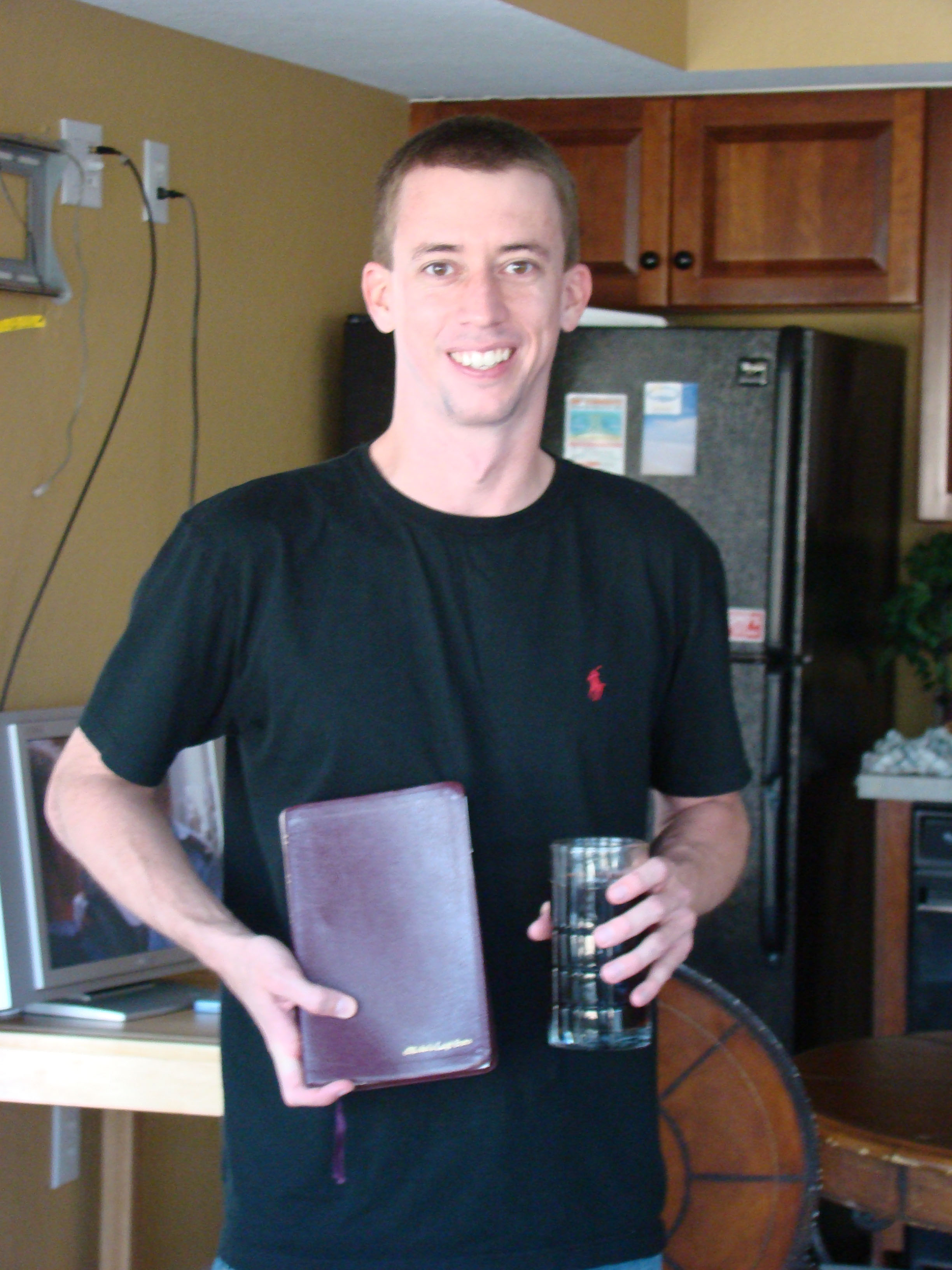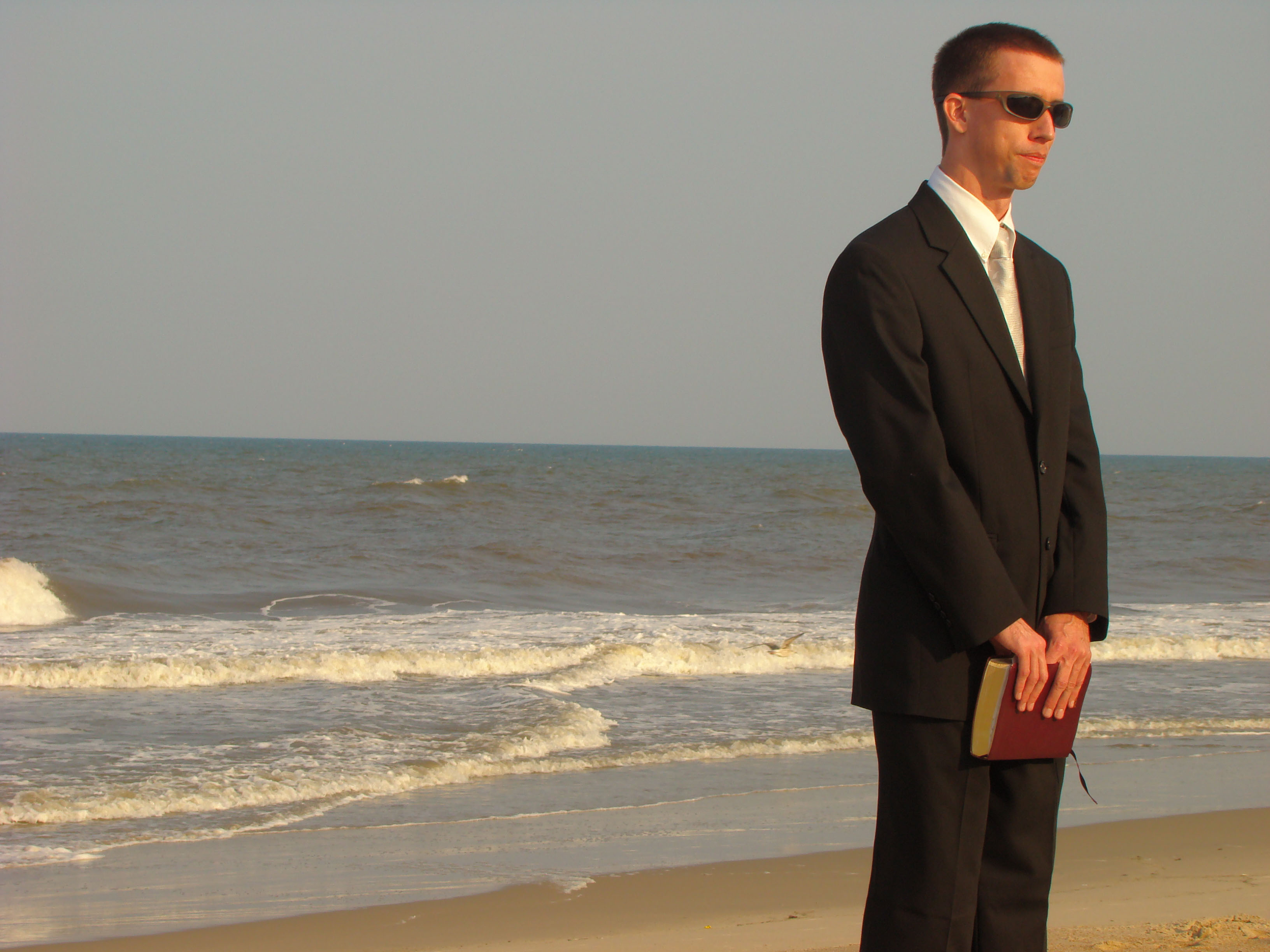 The first picture was taken a mere hour before the ceremony. In my right hand you'll find the good book (the bible), in my left hand you'll find the good drink (Beam & pepsi). The second picture was during the ceremony, I had to wear shades because I was the only person looking directly into the sun, it was at everyone else's backs. (obviously)