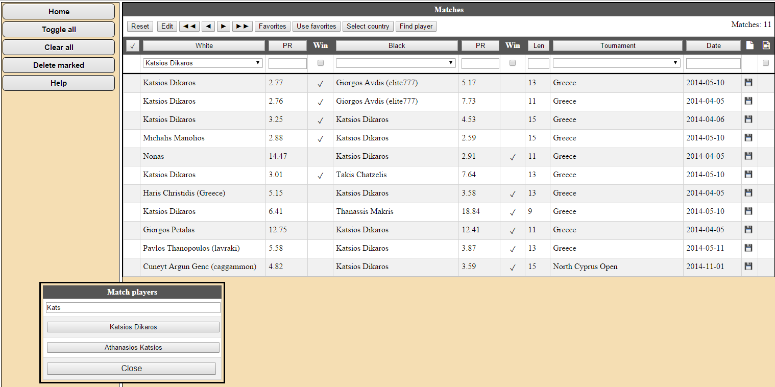 I also see that "Katsios Dikaros" played against himself in one match which doesn't look entirely correct! :-)