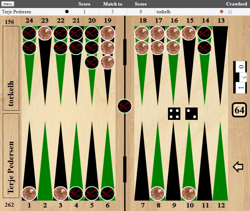 A few months ago I ended up in an epic backgame which at one point was a 1-2-3-4-5 backgame which was rather amusing! A few days ago I was revisiting past errors and went straight for the double blunder again!
