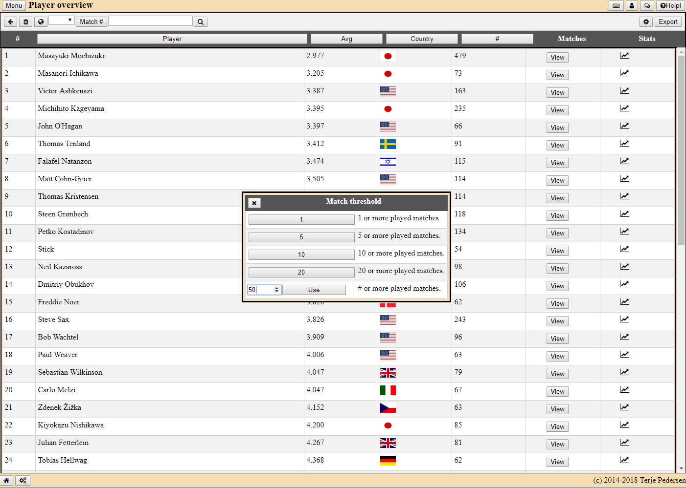 Who transcribed it? The one who sent me the match? Sometimes yes sometimes maybe not. I also pick up matches from other locations: dropbox, othellos database ++ so that information may not be available either. For this information to be worth collecting more players need to include this when transcribing the match: