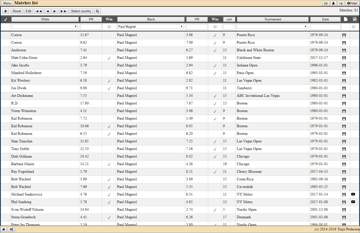 I also found a couple of old Magriel matches so now I have 81 matches from Magriel in the database: