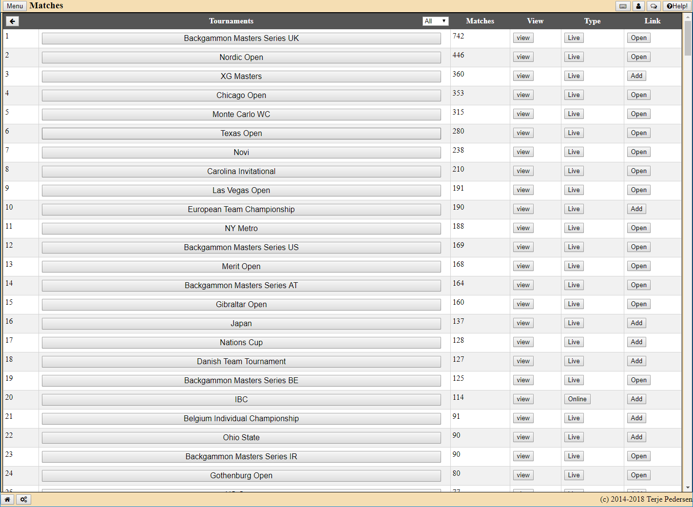 Mochy played 26 matches in this tournament in 2016! Wow! And how well did he play? Did he crush everybody else by a good margin? Visit Backgammon Studio and click on menu/matches/statistics/tournaments to find out! Click on the year on the left hand side to reveal an average PR list.